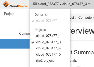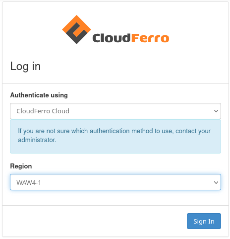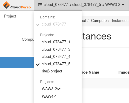 Log in via https://horizon.cloudferro.com/auth/login/?next=/ and select the desired site and cloud region: